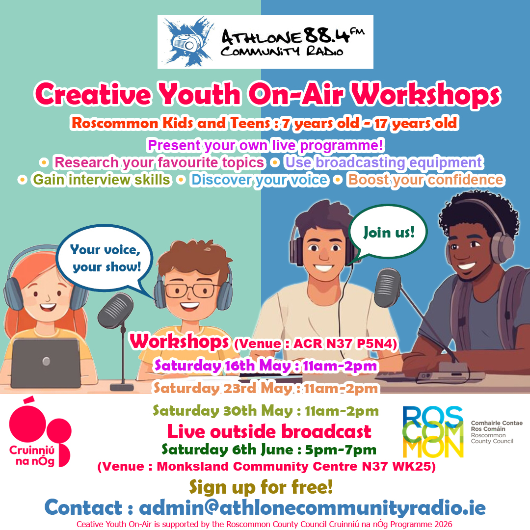 Creative Youth On-Air is supported by the Roscommon County Council Cruinniú na nÓg Programme 2026
